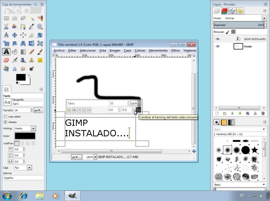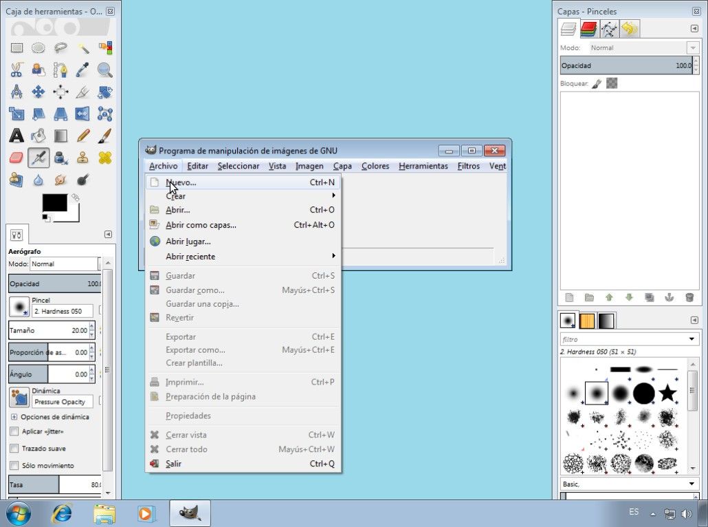 Para finalizar la instalación, verificaremos que GIMP está funcionando probando a abrir el programa y hacer algunas cosas.